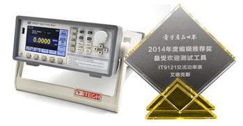 IT9121功率表 荣获《电子产品世界》杂志编辑推荐奖 2014年12月12日,2014年度电子产品世界编辑推荐奖在北京揭晓。艾德克斯电子有限公司(ITECH)的IT...