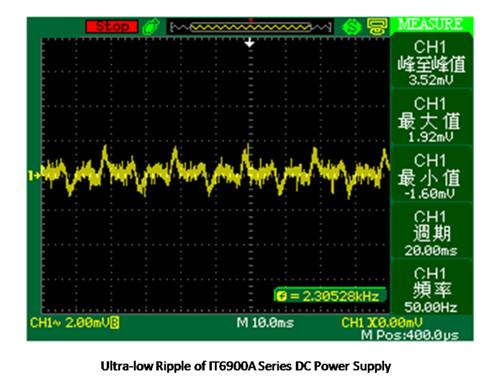 In this case, the IT6900A series DC power supply can be used. As the voltage and current ripple coefficients are respectively no more than 5mVp-p and 5mArms, engineers do not need to worry about the influence on the ripple characteristic property caused by ripple superimposition in the test.