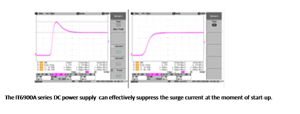 The IT6900A series DC power supply of ITECH can effectively suppress surge current, as shown in the following figure.