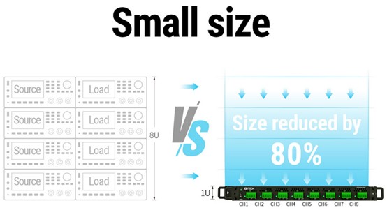 What’s more outstanding is that IT2700 canachieve eight simultaneous outputs up to 1U high. This feature gives IT2700significant advantages in various production lines that require paralleltesting and high efficiency. The 1U main frame can include up to 8modules (200W each) or 4 modules (500W each). Different modules can be groupedand synchronized. It can be widely used in ATE integration in R&D, designverification and manufacturing of DC-DC converter, communication powersemiconductors, 3C products, like smartphone, PCBA, battery simulation andtest, chips BMS chips etc.