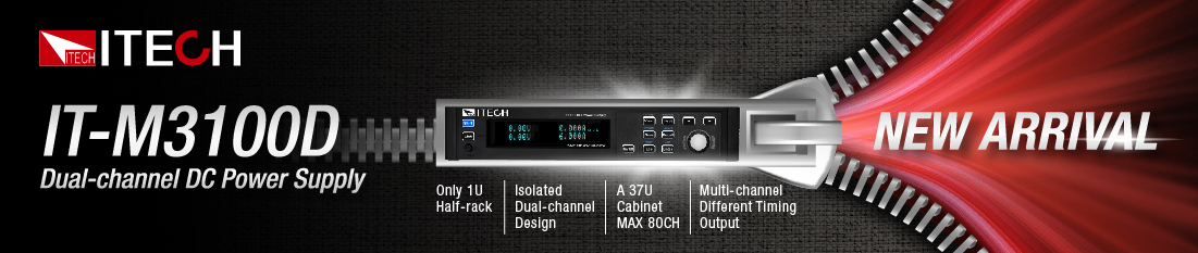 ITECH has launched IT-M3100D series, the firstdual-channel DC power supply in the M series. So far, M series has 11sub-product series, covering DC power supply, AC power supply, bi-directionalDC source, source and load system, regenerative DC load, high-precision DCsource and other product lines, giving users a very wide range of choices tomeet diverse testing demands.