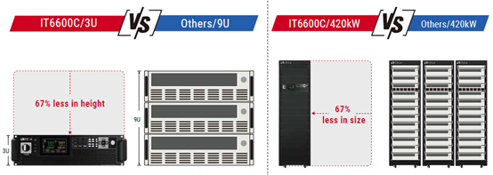 IT6600C bidirectional DC power supplyprovides up to 42kW power supply and loading power in a 3U chassis, making itpossible of a bench top solution for a high-performance and high-power test. Itis also very suitable for integrated systems with strict space requirements.