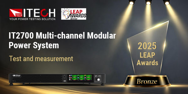 ITECH’s IT2700 Multi-Channel Modular Power System has been awarded theBronze in the Test and Measurement category of the 2025 LEAP Awards,recognizing its outstanding innovative design and technical excellence. This accolade fully affirms ITECH’s ongoing innovation and leadership in the field of power testing technology.