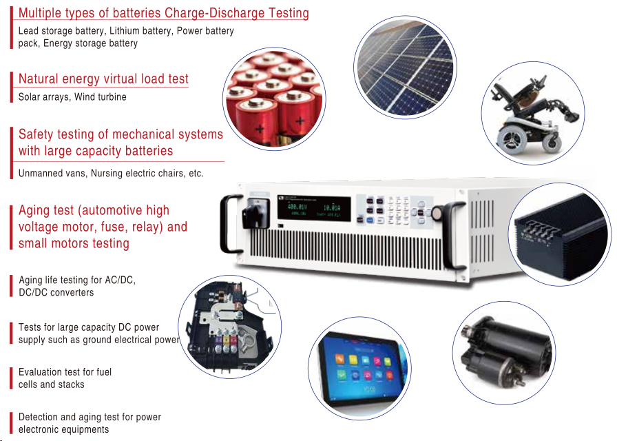 IT8000 series is a family of high power regenerative electronic loads with compact size. The highly integrated capability enables the e-load to simulate various e-load characteristics, and return the consumed energy back to the grid cleanly, saving costs related to energy consumption and cooling, meanwhile eco-friendly. With modular high power density design, IT8000 provide up to 18kW in 3U space. The power is expandable up to 2MW by master-slave parallelling and active current sharing. If you move into application of high power UPS, storage battery, PV battery, EV, energy storage system, ITECH can help you with IT8000 series high power regenerative electronic load.