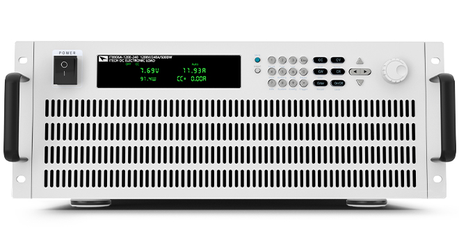 IT8900A/E series high performance high power DC electronic load provides three voltage ranges 150V/600V/1200V, stand-alone power from 2kW to 54kW. IT8900A/E series, with ultra-wide voltage and current range, controlled by an independent master unit. The power expands to 600kW by master-slave paralleling. Ultra-high power density, 6kW is with only 4U height. IT8900A/E series has eight (A series) / four (E series) working modes, faster loop response and current rising and falling speed, as well as dynamic mode, OCP test, OPP test, automatic test and battery test functions. Built-in CAN, LAN, GPIB, USB, RS232 and analog interfaces, etc., IT8900A/E series has full protection function, which can be applied to power battery discharge, DC charging station, on-board charger (OBC), power electronics and other power electronics products.