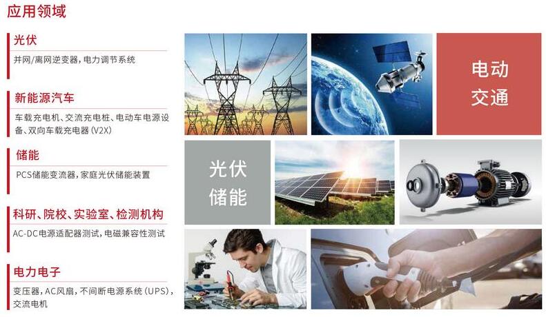 ♦ 可作能馈式电网模拟器,全四象限AC/DC源