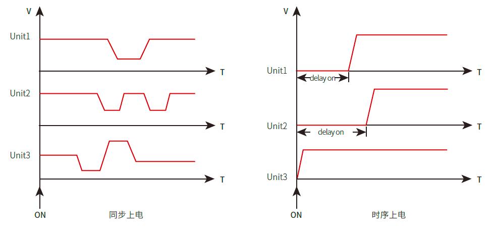 该功能应用为多机输出时序控制,例如用同一信号触发输出,设置不同的On Delay/ Off Delay即可实现毫秒级时序控制输出。