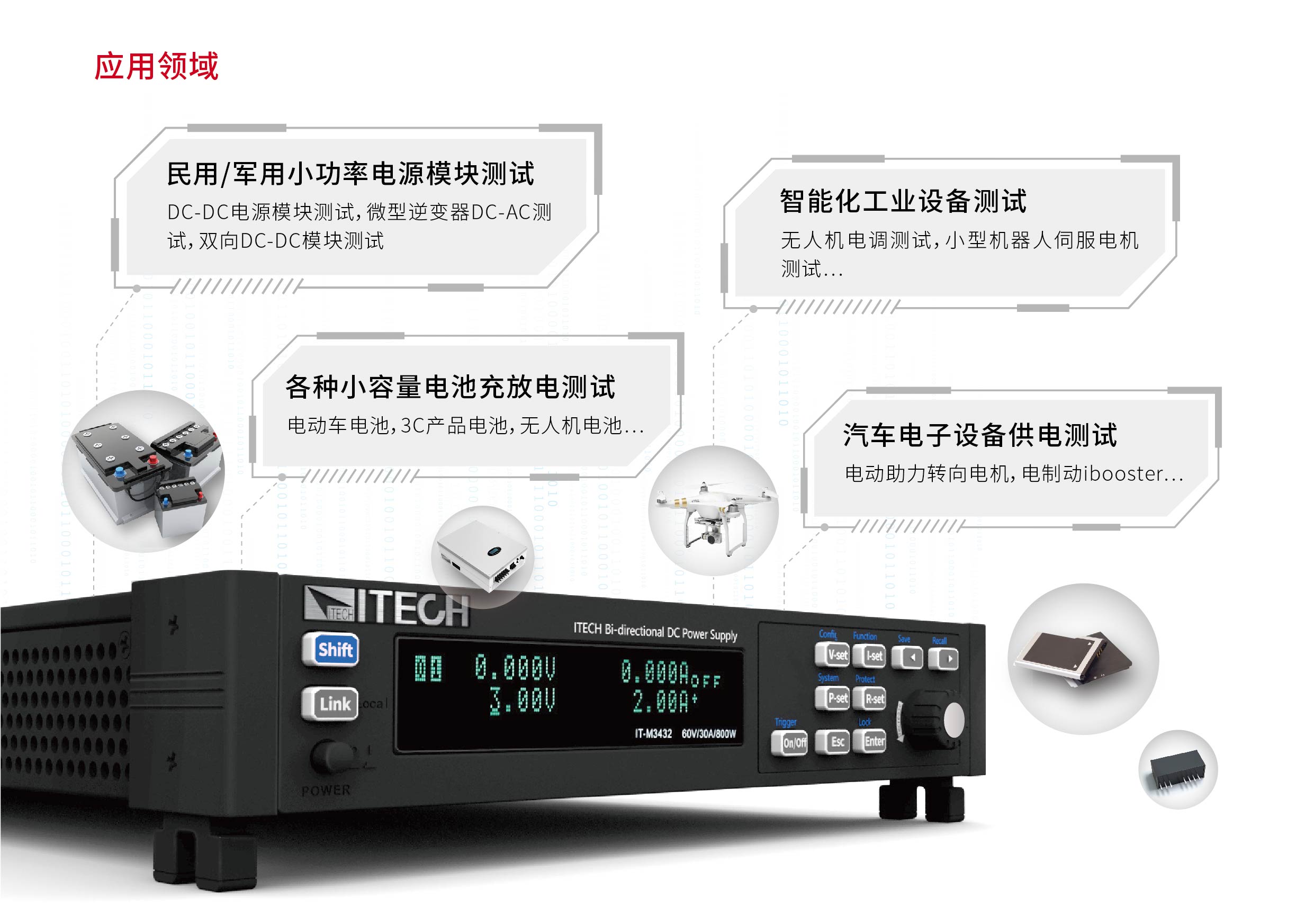 IT-M3400拥有½U的Mini体积,可提供800W功率输出,不但具备高功率密度,同时也拥有高分辨率、高精度和高稳定性等特性。输出电压可达600V,输出电流可达30A。全系列共有12个型号,宽范围输出设计,一台机器可涵盖广范围的应用需求。